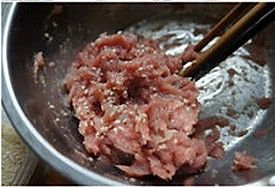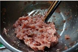 再加清水让肉馅吸水变得粘稠。基本跟饺子馅一个做法。
