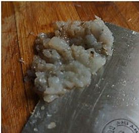 我把猪肉放绞肉机里绞碎,把猪肉和虾肉混在一起,