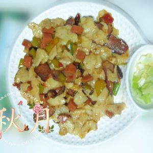 然后再揪成一小片一小片的面片(面片可提前揪成小片,也可以边揪边煮)