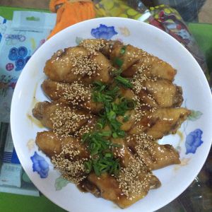 鸡翅焯水五分钟 捞出放进冷水冲洗一下 把每个鸡翅用刀划两道 容易入味用少量酱油 姜片研制半小时