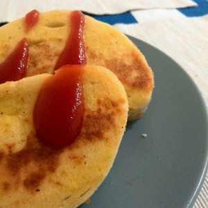 鸡蛋加盐打散,在馒头片上刷一层蛋液
