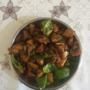 留少量油,放入辣椒,葱姜,待辣椒软下来后放入之前的土豆茄子。
