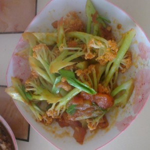 菜花洗尽备用,我们当地的菜花是高杆菜花吃起来很甘甜,很多外地人都特意但我们这里来买,之前在北京待过都没见过,北方可是莫有的哦,呵呵