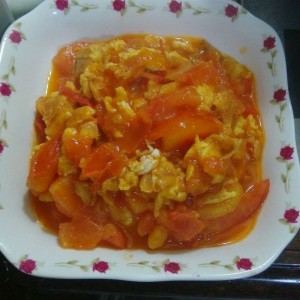 西红柿切小块(不要太大不好吃)鸡蛋打散备用