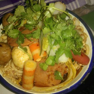 最后在装盘好的香锅上洒上香菜段,一碗可口又方便的自制麻辣香锅就做成了,如果还嫌不够麻的话可以在炒的时候弄点麻椒油。开吃了,比较懒,做的时候没有按步骤拍图,只能发成果图了