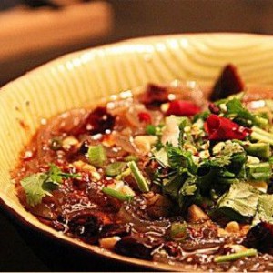 煮熟粉条,盛入调料碗中,调味,酱油、醋、盐、鸡精