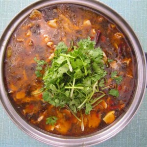 加水,我就加的自来水,因为家里没热水。(如果你要用鱼骨汤的话,一定要事先煮好备用。)加入调味包,泡椒