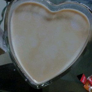 咖啡搅拌融化后倒入牛奶,咖啡和牛奶的比例大概是2:1。这个可以根据个人口味添加。