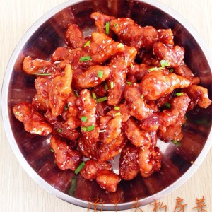 使肉段上面沾满糖醋汁,然后关火起锅,撒少许熟芝麻即可