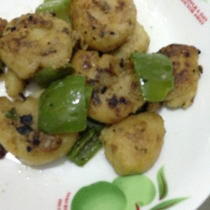 加入切好的青椒,翻炒,加味精。尝味后起锅。
