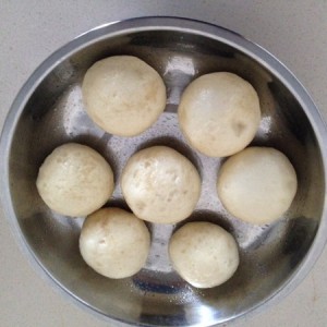 面粉 鸡蛋 炼奶 糖 温水 酵母粉 和一起 使出浑身解数地搓 醒2个钟 揉成小团子 再醒15分钟
