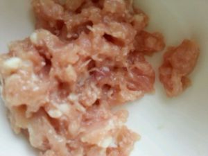 五花肉剁成肉泥,依次加入黄酒,盐,一点点淀粉,一个方向搅拌,最后稍放一点生抽和胡椒粉!实际这馅可按个人喜欢加入虾泥,黑木耳,荠菜……
