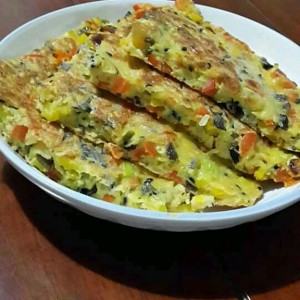 维持小火状态,一面烙熟后翻面,直到两面金黄