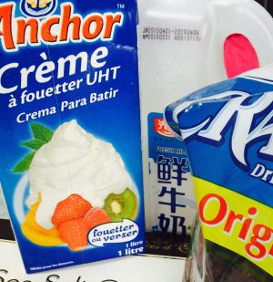 准备好原料,糖先在牛奶中溶开,(可以根据口味自行加减糖的用量),和其他一起加入冰淇淋机搅拌桶!时间设定50分钟!