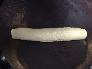 中间稍稍刷一点水再卷起,放入冰箱冷冻室,20分钟取出。