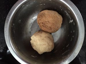 两种面团和好后醒发30分钟。