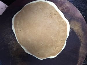 黄色面团擀稍小一点。