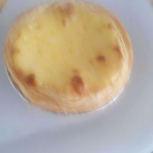 把搅匀的牛奶鸡蛋液倒入解冻好的蛋挞皮中,放在烤盘中,入烤箱