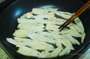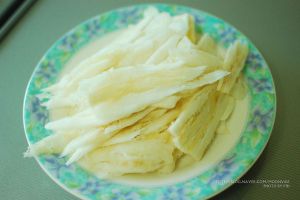 若没有卖收拾好的沙参的话先去皮,再用棍子敲扁即可。