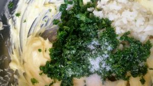加入细砂糖,蒜蓉和西洋芹碎