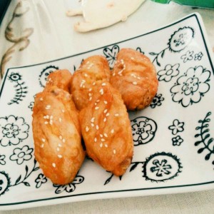 翅中划2道口子,放进水和新奥尔良粉的调料里腌制。可以晚上腌制了放冰箱过夜第二天开始弄!很快。
