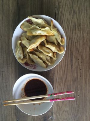 一盘香喷喷的煎饺就好了…………