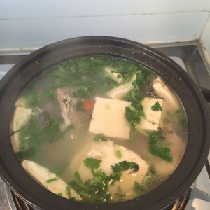 豆腐切块,鲫鱼洗净,香菜,姜少许备用。