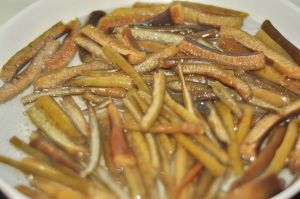 干海笋用冷水浸泡3个小时左右,不要泡的太久。至全部泡开。
