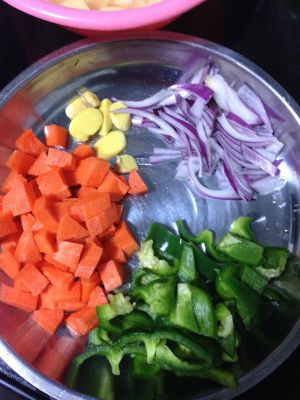 萝卜、洋葱,青椒切小块