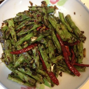 四季豆洗干净去尖,掰成小段,控水。蒜切碎,锅内放多点油,油开后把四季豆炸至表面皮起皱,捞出控油,锅内油倒出不要留油,花椒、干辣椒、蒜米放锅内炒把四季豆放进去,放椒盐多点,一起煸大概3至5分钟即可。