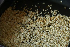 另准备一个小锅,将白芝麻冲洗干净,沥干水,放入锅中炒香备用