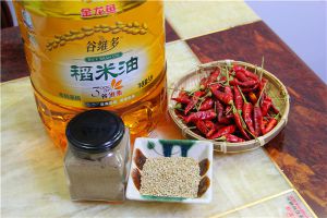 准备材料,油,辣椒干适量,白芝麻适量,还有之前做好的自制椒盐粉(椒盐粉成分:盐,花椒,黑胡椒,藤椒,之前有过介绍,没有准备的,可以用适量花椒,黑胡椒颗粒代替)