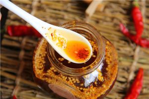 将油倒入碗中,顿时沸腾起来,用筷子搅拌一下,搅拌好的热油完全晾凉
