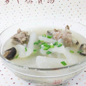 砂锅中加水,放入排骨,姜片、葱,中火炖半小时