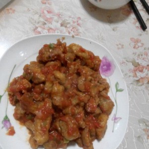 把西红柿切成末如果炒至酱样后把炸好的里脊倒入翻炒