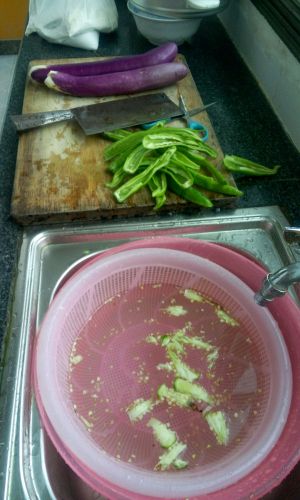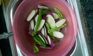 茄子切斜刀,沥干水