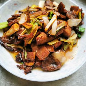 五花肉放入几片姜煮七分熟,捞出切薄片。