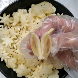 将全部完成的花形小饼,集中放在一起,方便下锅操作。