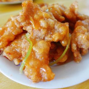 糖醋汁儿,糖、醋、蚝油、生抽、水淀粉比例2:2:1:1:3,淀粉稀一点