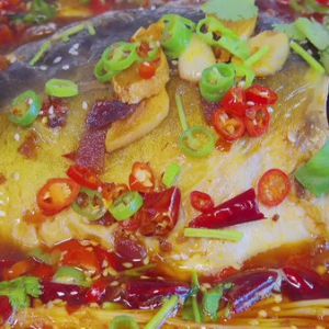 烤好的鱼撒上干辣椒和辣椒圈,用热油淋一下,沸腾锡纸烤鱼就做好了。