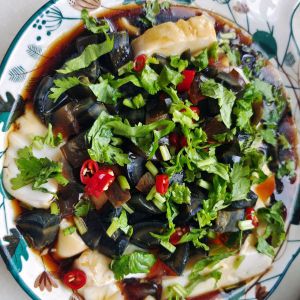 豆腐铺下面,皮蛋放锅里蒸五分钟,剥壳切丁