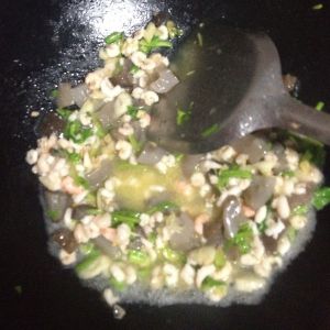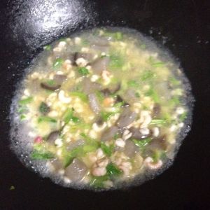 加少许水,盐味精调味,加入香葱