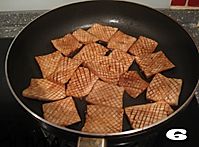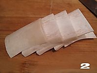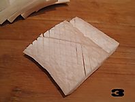 在薄片上切成十字花刀,类似鱿鱼卷的切法。