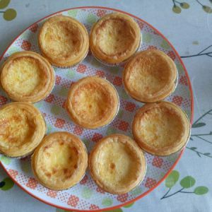 烤箱200°上下火,烤40分钟,我喜欢吃火稍微大一点的,可以根据自己口味,调整烤的时间,美味的葡式蛋挞完美出炉