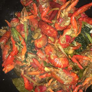 先爆炒调料,后放虾翻炒,倒啤酒,放酱油,老抽,十三香,聪和香菜大火闷差不多收汁