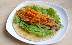 焯过的胡萝卜丝、莴笋调入盐、味精、白糖、胡椒粉、香油,搅拌均匀制成馅料