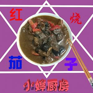 倒入茄子,翻炒均匀,炒至变黄色,装盘备用