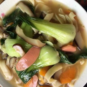 油烧热后,下入香菇和胡萝卜加盐翻炒均匀后,加入清水烧热后,加入青菜烧热