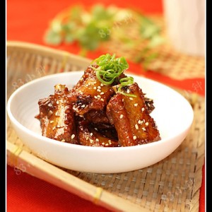 大火收汁,待汤汁都包裹在排骨上时关火,撒上熟芝麻即可。