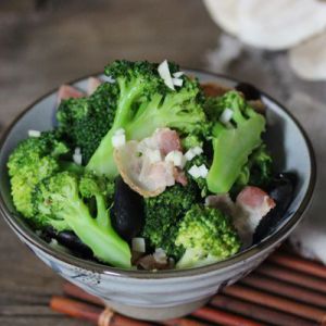 加入大蒜爆香,改大火,加入西蓝花、小碗秋耳大火翻炒3分钟,加适量的盐。